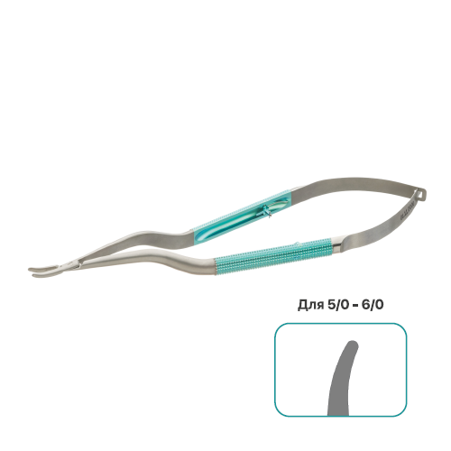 Иглодержатель 5,0/6,0 медицинский микрохирургический изогнутый, с байонетными круглыми браншами, с универсальным замком, длина 185 мм, арт: 01.11.0000